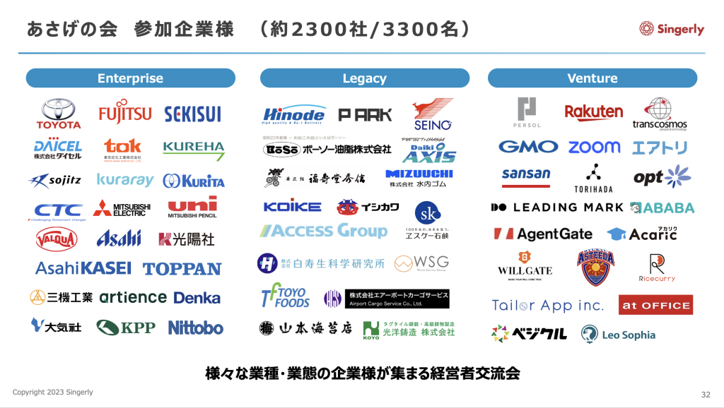 参加企業様例〜累計200回、2300社、3200名様突破〜